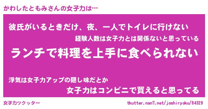 | 恥ずかしいあだ名 | 『プリティーかわしたともみ』『かわちん』 |