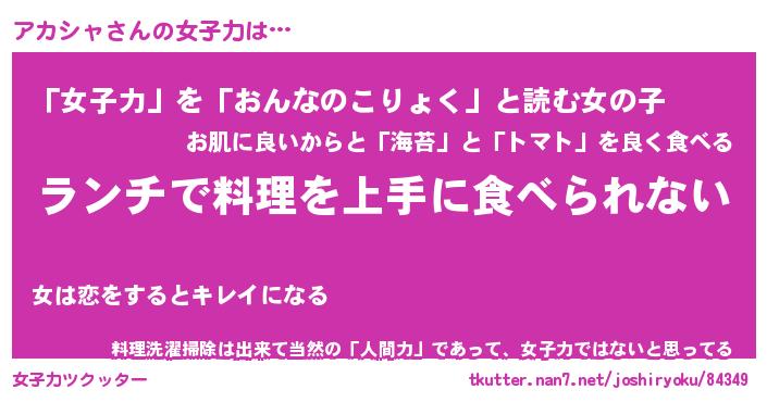 | 意味不明あだ名 | 『ペロリンアカシャ』『永久保存アカシャ』 |