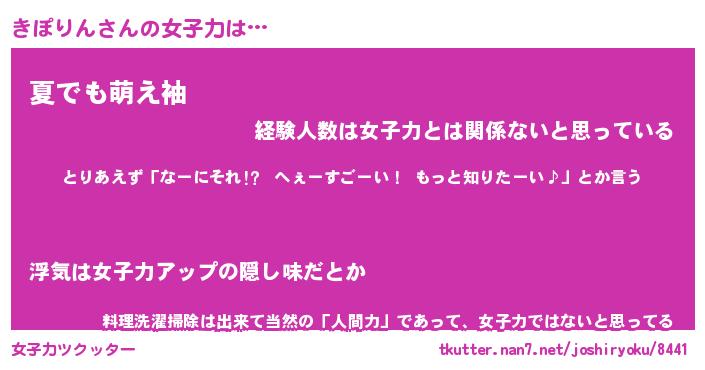 | ヘコむあだ名 | 『きぽもー』『なまこ酢』『きぽ太郎』 |