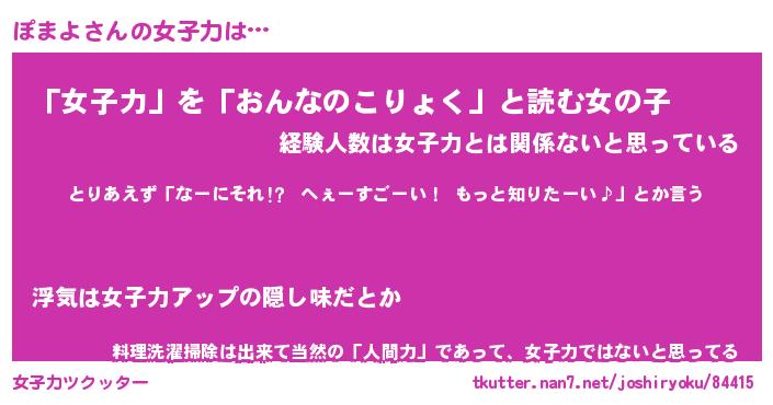 | ヘコむあだ名 | 『ぽまもー』『レバニラ』 |