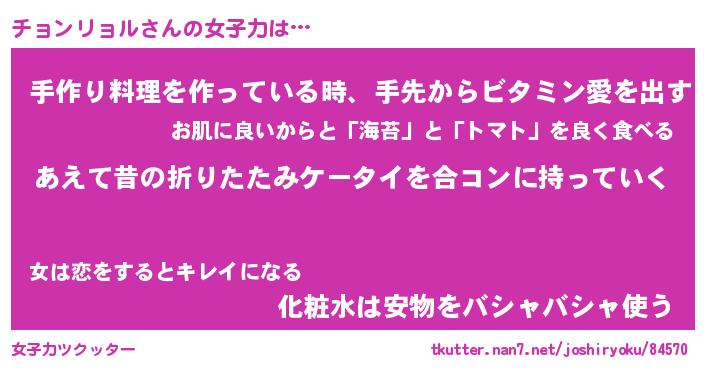 | 男性向けラノベタイトル風あだ名 | 『チョンリョルの憂鬱』 |