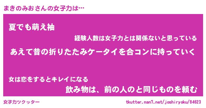 | ヘコむあだ名 | 『まきもー』『豆乳』『まきを』 |