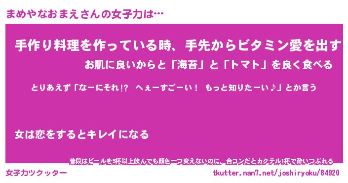 | ヘコむあだ名 | 『まめふぇ~』『牛乳』『まめっぺ』 |