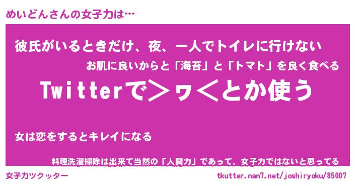 | ヘコむあだ名 | 『めいふぇ~』『牛乳』『めいを』 |