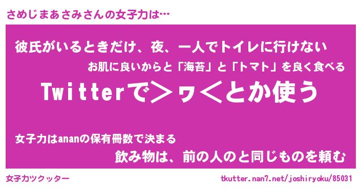 | ヘコむあだ名 | 『さめふぇ~』『豆乳』『さめ太郎』 |