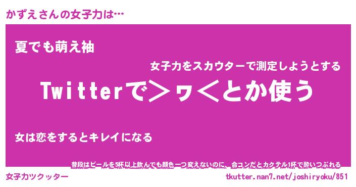 | 男性向けラノベタイトル風あだ名 | 『かずえの憂鬱』 |