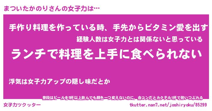 | ヘコむあだ名 | 『まつにゅー』『つくし』『まつ太郎』 |