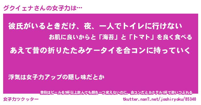 | 男性向けラノベタイトル風あだ名 | 『グクイェナの憂鬱』 |