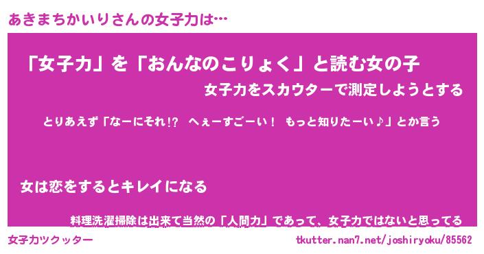 | 男性向けラノベタイトル風あだ名 | 『アキマチカイリアートオンライン』 |