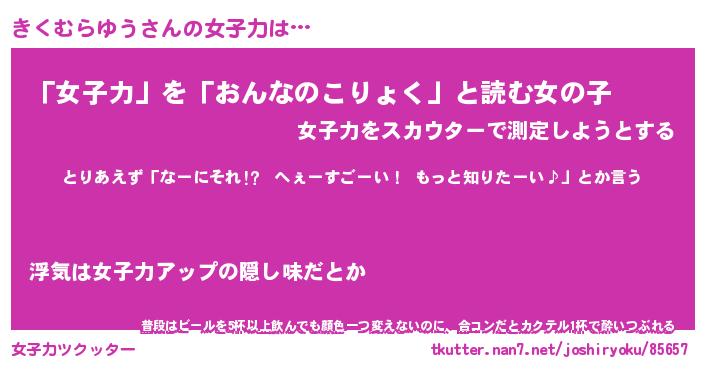 | 恥ずかしいあだ名 | 『プリティーきくむらゆう』『きくっちょ』 |