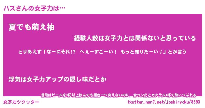 | ヘコむあだ名 | 『ハスにー』『つくし』『ハスっ子』 |