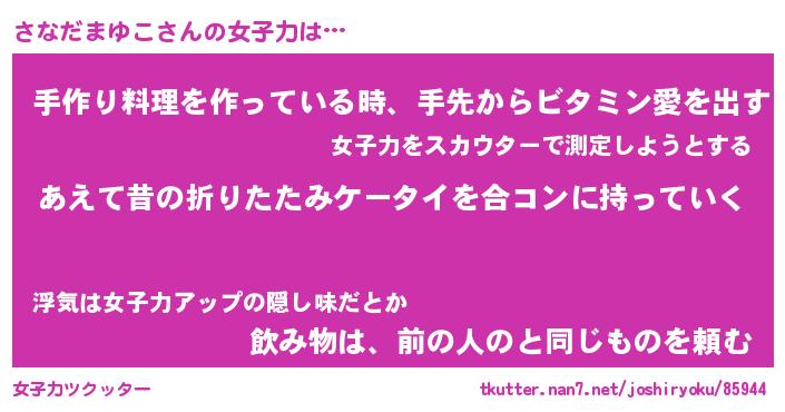 | 伝説のあだ名 | 『伝説のスナイパーさなだまゆこ』 |