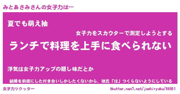 | ヘコむあだ名 | 『みとにゅー』『なまこ酢』 |