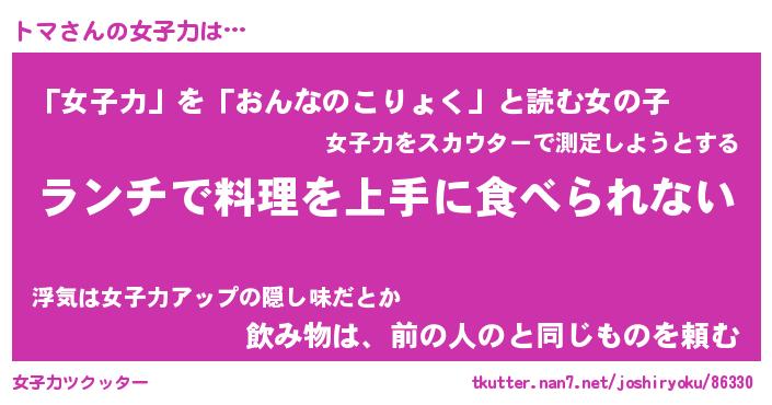 | ファンタジー風あだ名 | 『トマフェル』『エターナルトマー』 |