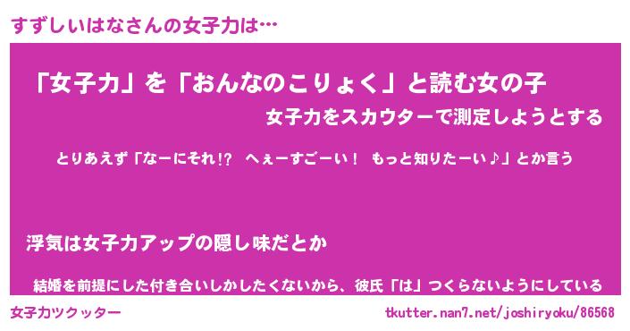 | ヒーロー風カッコイイあだ名 | 『スーパースズシイハナ』『暗黒騎士スズ』 |