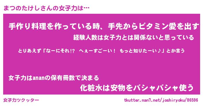 | ヒーロー風カッコイイあだ名 | 『スーパーマツノタケシ』『銀牙騎士マツ』 |