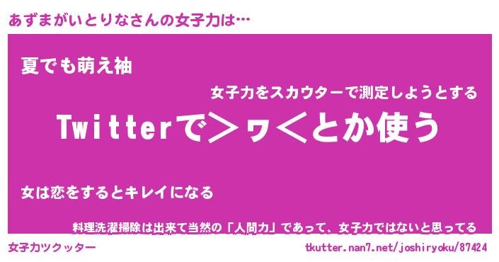 | ヘコむあだ名 | 『あずふぇ~』『なまこ酢』 |