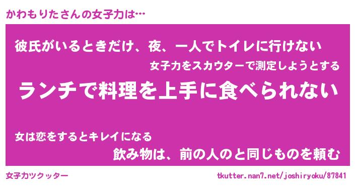 | ファンタジー風あだ名 | 『カワフェル』『エターナルカワモリター』 |