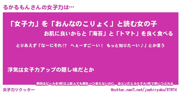 | ヘコむあだ名 | 『るかにゅー』『酢こんぶ』 |