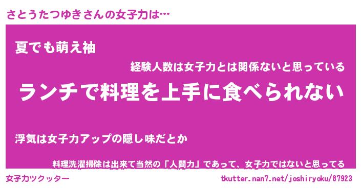 | 恥ずかしいあだ名 | 『プリティーさとうたつゆき』『さとちん』 |