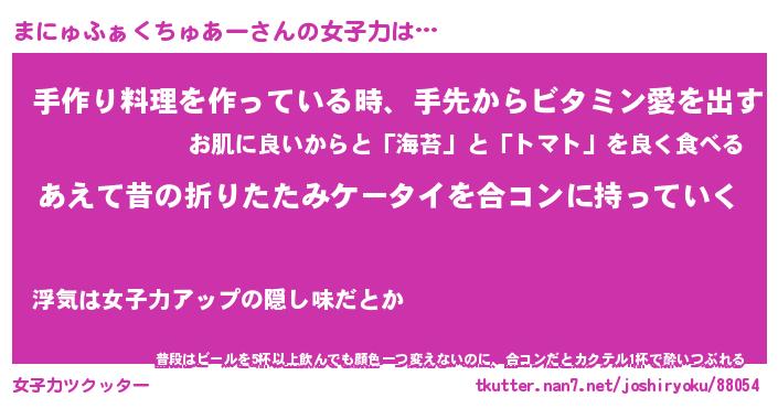 | 自動車の名前っぽいあだ名 | 『プリマニ』『マクア』『デミマ』 |