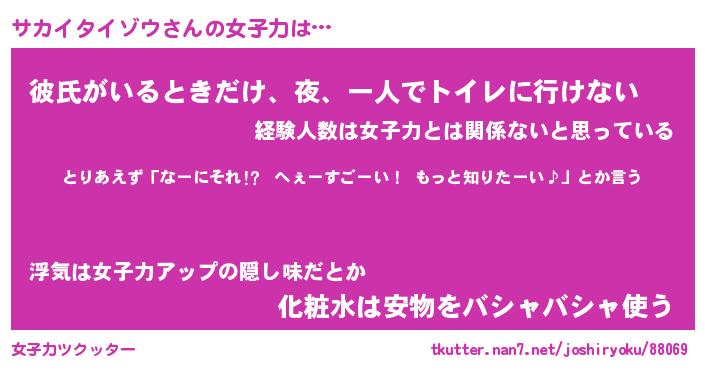 | ヘコむあだ名 | 『サカもー』『豆乳』『サカお』 |