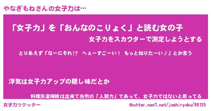 | ファンタジー風あだ名 | 『ヤナフェル』『エターナルヤナギモネー』 |