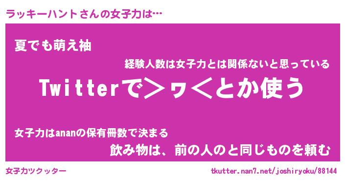 | 女子向けラノベタイトル風あだ名 | 『ラッキーハント姫と円卓の騎士』 |