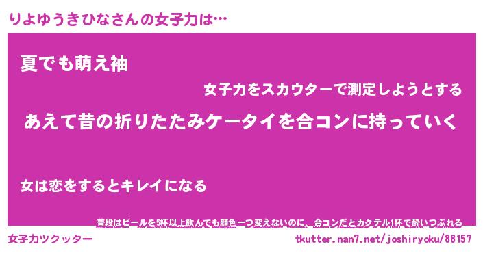 | 伝説のあだ名 | 『伝説のスナイパーりよゆうきひな』 |