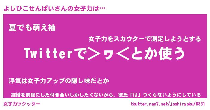 | ヘコむあだ名 | 『よしふぇ~』『なまこ酢』 |