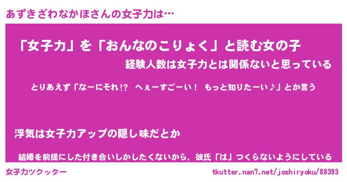 | ヘコむあだ名 | 『あずっふぃ~』『酢こんぶ』 |