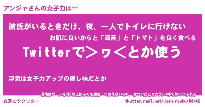 | 意味不明あだ名 | 『ペロリンアンジャ』『永久保存アンジャ』 |