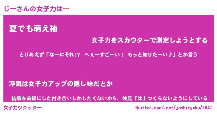 | ヘコむあだ名 | 『じーにゅー』『つくし』『じーを』 |