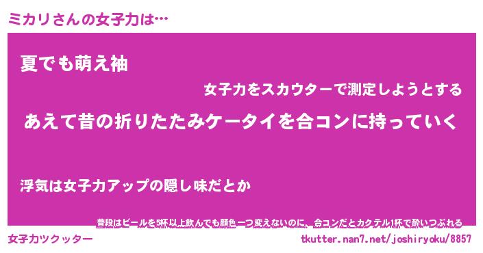 | ポケモン風あだ名 | 『ミカチュウ』『ミカリダネ』 |