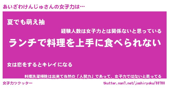 | 料理風あだ名 | 『ネギたっぷりあいざわけんじゅの南蛮漬け』 |