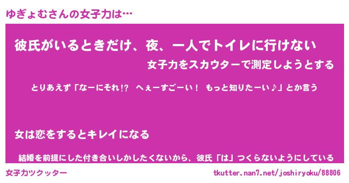 | ヘコむあだ名 | 『ゆぎにゅー』『なまこ酢』『ゆぎお』 |