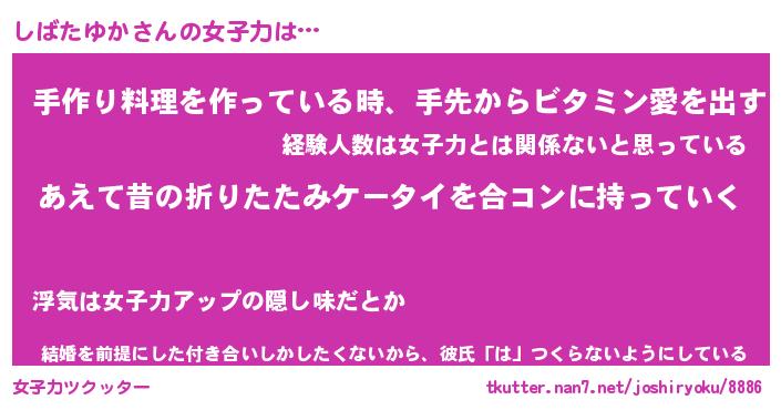 | 恥ずかしいあだ名 | 『プリティーしばたゆか』『しばっちょ』 |