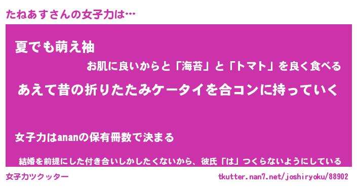 | ファンタジー風あだ名 | 『タネフェル』『エターナルタネアスー』 |