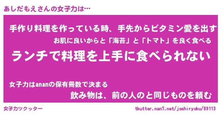 | 恥ずかしいあだ名 | 『プリティーあしだもえ』『あしっちょ』 |