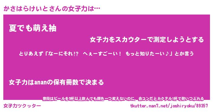 | 伝説のあだ名 | 『封印されしスナイパーかさはらけいと』 |