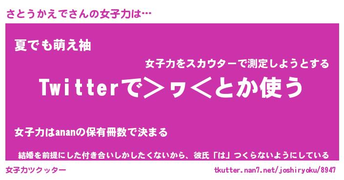 | ヒーロー風カッコイイあだ名 | 『スーパーサトウカエデ』『暗黒騎士サト』 |