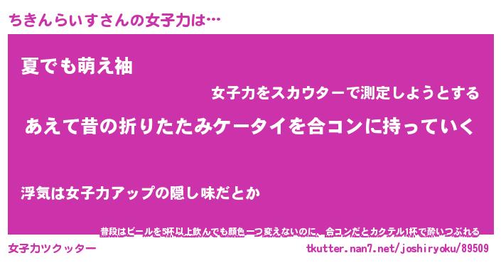 | ヘコむあだ名 | 『ちきにゅー』『つくし』 |