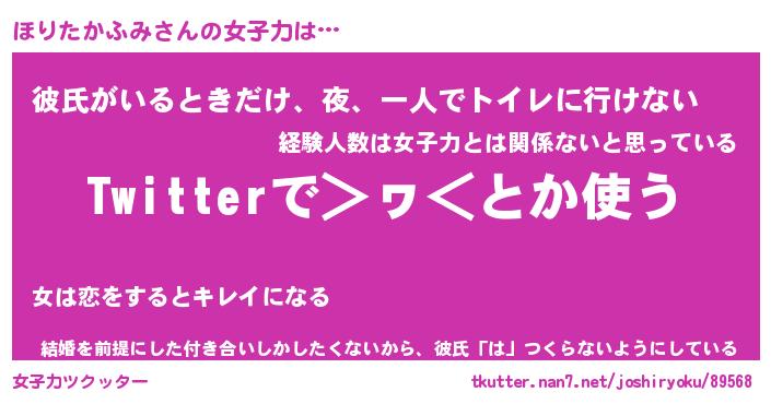 | ヘコむあだ名 | 『ほりふぇ~』『豆乳』『ほり太郎』 |