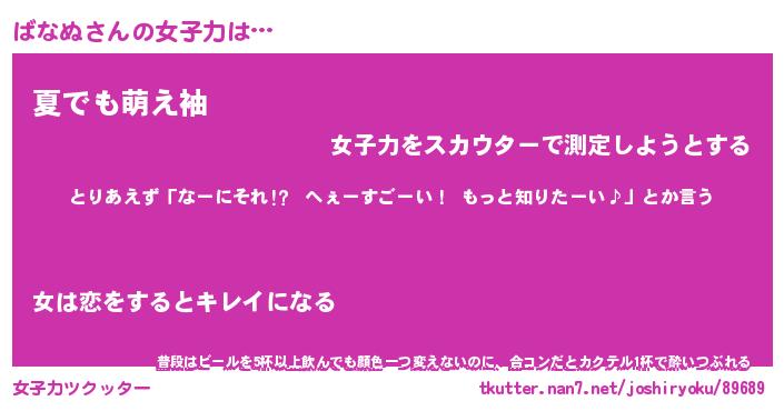 | ヘコむあだ名 | 『ばなふぇ~』『なまこ酢』 |