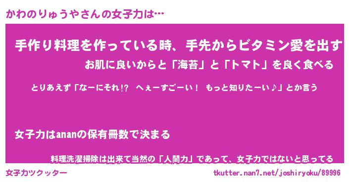 | ヘコむあだ名 | 『かわにー』『豆乳』『かわっ子』 |