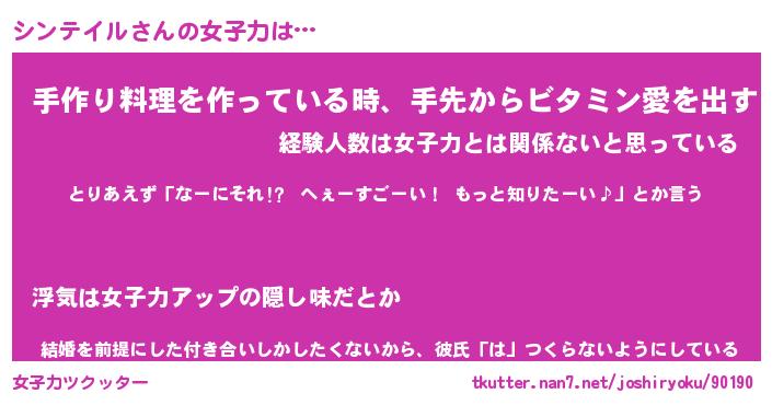 | 恥ずかしいあだ名 | 『プリティーシンテイル』『シンっちょ』 |