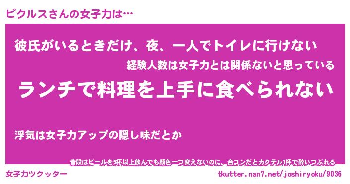| ヘコむあだ名 | 『ピクにゅー』『豆乳』『ピクぷりん』 |