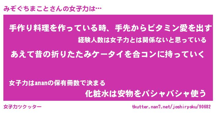 | 女子向けラノベタイトル風あだ名 | 『(仮)みぞぐちまことのやんごとなき事情』 |