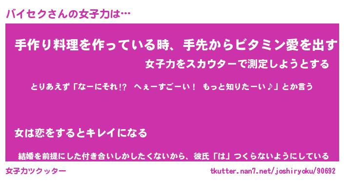 | ファンタジー風あだ名 | 『バイフェル』『エターナルバイセクー』 |