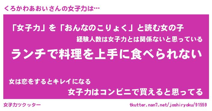 | ヘコむあだ名 | 『くろふぇ~』『酢こんぶ』『くろを』 |